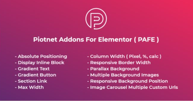 Piotnet Addons For Elementor Pro v5.16.22 Nulled are plugins that extend the functionality of the Elementor page builder and add many new features. List of functions: absolute positioning, display of the built-in block, gradient button, text gradient, section link, maximum width, adaptive border width, adaptive background image, background-position, column width, parallax Background for each element, several background images, carousel, several custom URLs and more.