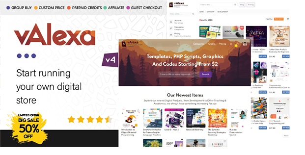 Valexa 1.2.1, a single vendor PHP Script For Selling Digital Products And Digital Downloads, software, graphics, audios, videos, fonts, templates, and any downloadable items.